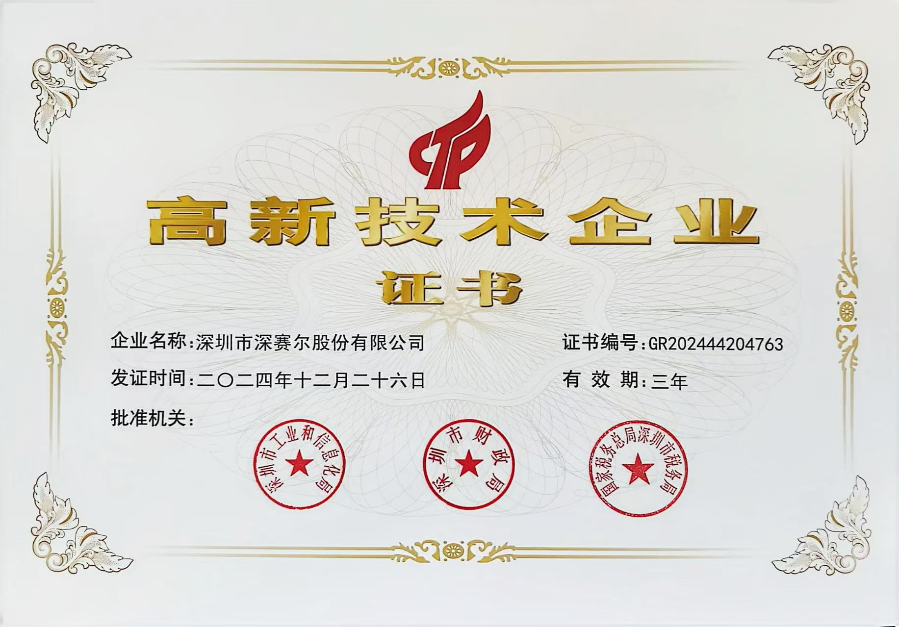 高新技術(shù)企業(yè)證書