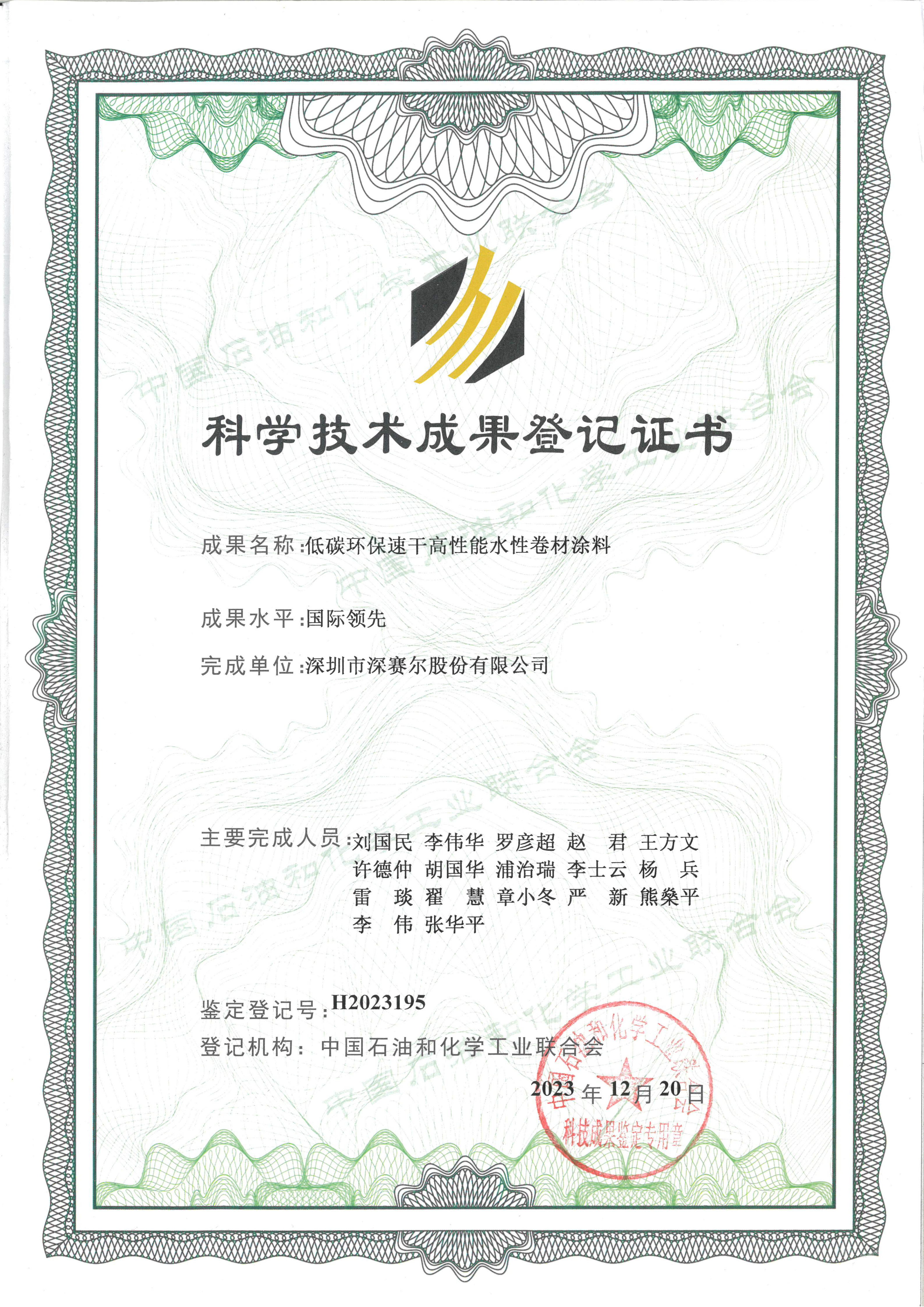 科學(xué)技術(shù)成果登記證書